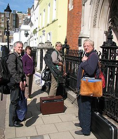 Zuerst luden wir unserer Instrumente, die Noten und die Teile der Anlage aus, die wir mitgebracht hatten. Dann übernahm Ulli das Steuer unseres Busses und brachte uns zu sich nach Hause. Diese etwa 17 km lange Strecke dauerte noch einmal eineinhalb Stunden, gab uns schon einen netten Vorgeschmack auf die unzähligen Sehenswürdigkeiten der Stadt … und einen bleibenden Eindruck vom Londoner Verkehr: Stop and Go ohne Ende, Autos und Busse vor, hinter, neben uns, Fahrradfahrer in halsbrecherischer Zickzackfahrt dazwischen, Menschentrauben an den Straßenrändern, ein unglaubliches Gewühl …! Wir waren froh, als wir gegen 21 Uhr endlich beim Pfarrhaus ankamen.